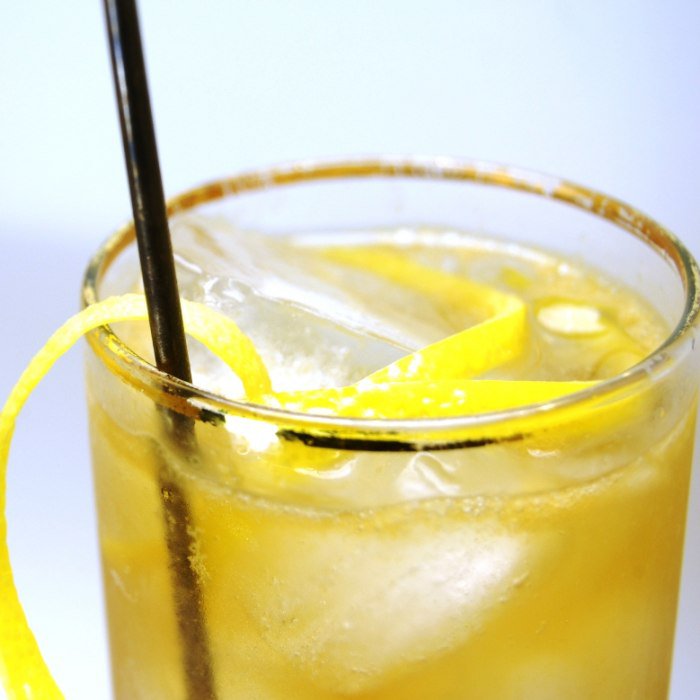 In uno shaker riempito a metà con cubetti di ghiaccio, unisci lo zucchero, l'acqua, il succo di limone e il bourbon. Filtrare in un bicchiere highball. Guarnire con la scorza di limone. Agitare bene. Filtrare bene.More info: