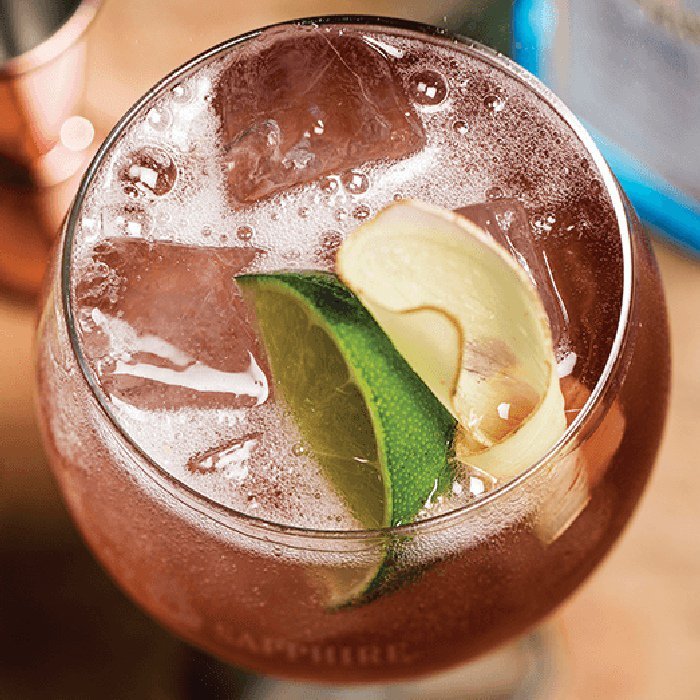 Gently stir to combine, top with a gently squeezed lime wedge and finish with a fresh ginger slice.